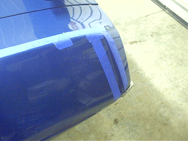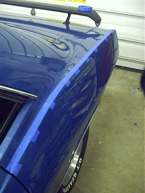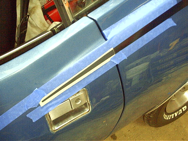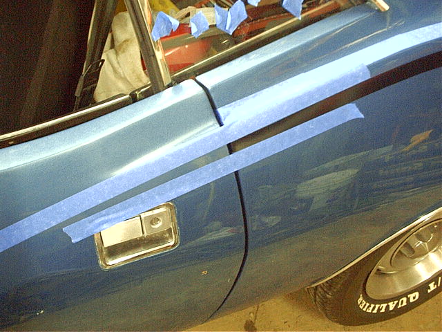 The measurements for the stripe are referenced from the vertical body character line and the ridge in the quarter panel, so my first step was to put a line of tape at these locations to make measuring easier.